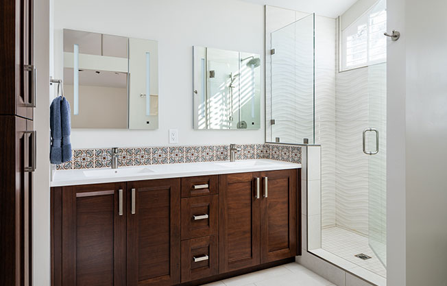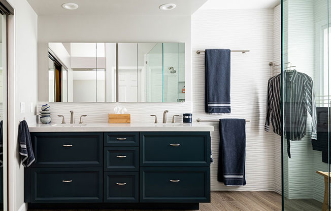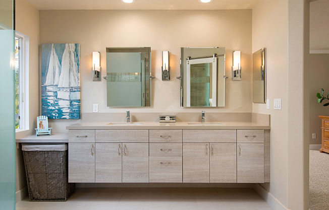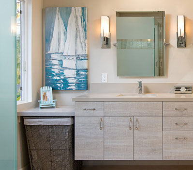 Perfect for San Diego, Beach Style Bathrooms include casual, light, and airy with coastal colors, natural materials, and easygoing vibes. You can blend any combination of Modern, Contemporary, Traditional or Transitional designs, but just keep it relaxed and breezy. Common features include reclaimed wood panels, a spacious walk-in shower, coastal colors, and California accents.