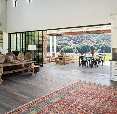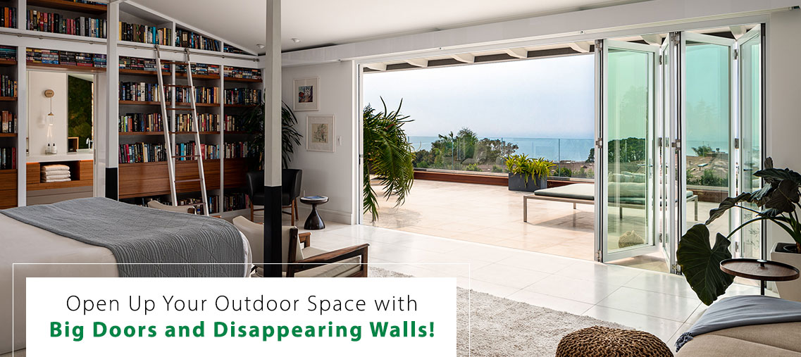 These Big Door Systems fold in many personalized configurations for your specific desires, including individual door openings, sliding sections, or collapsing into an accordion door form.