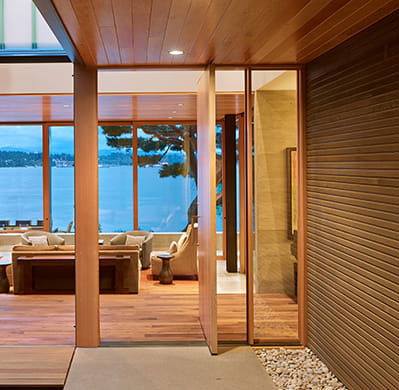 Imagine experiencing huge views from your living space through 25’x10’ openings with stylish glass wall designs with beautiful wood features. Then open the entire wall and put nature on the stage for you to enjoy.