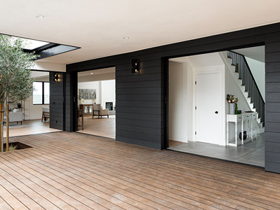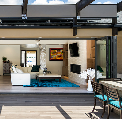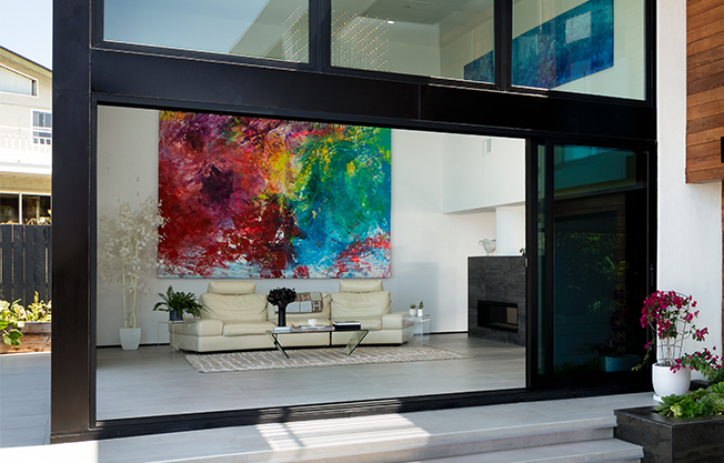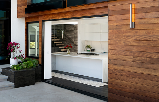Transform your indoor and outdoor living areas into a singular entertainment zone combining artistry and technology. Sliding-Pocketing Doors are gigantic sliding glass doors that are up to 16 ft tall that become a disappearing wall as the entire door slides into a wall pocket or collapses into stackable sections.