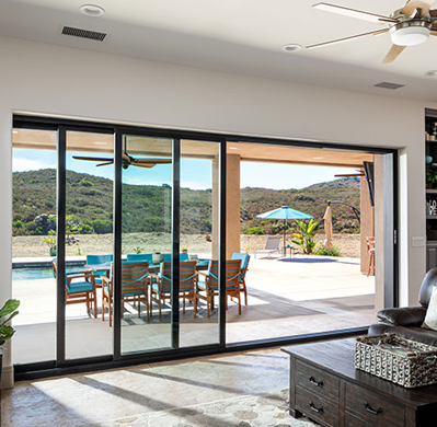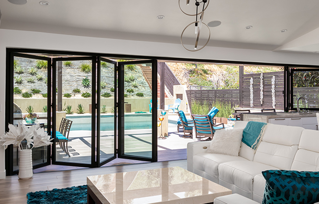 Enjoy Southern California Living by blending your indoor and outdoor living spaces with a Moving Glass Wall System. Big Doors create large spaces for entertaining friends and family, or simply taking in nature and home comfort in a peaceful moment alone.
